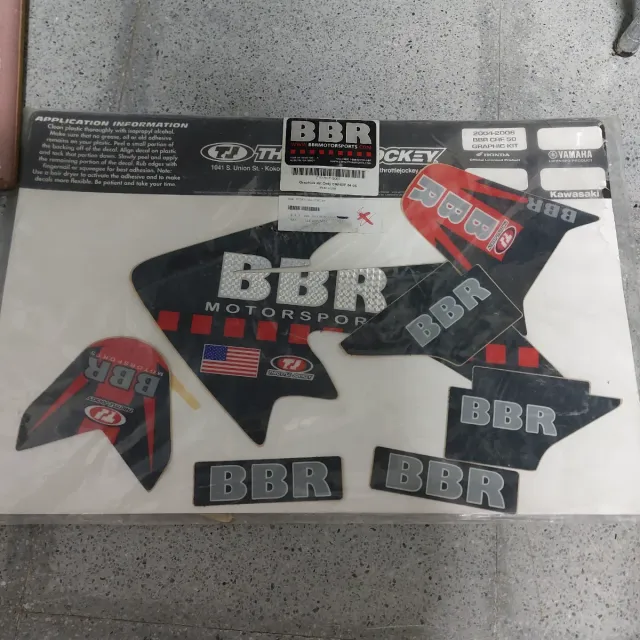 - Incluye varios adhesivos con el logo BBR y diseño de carreras.