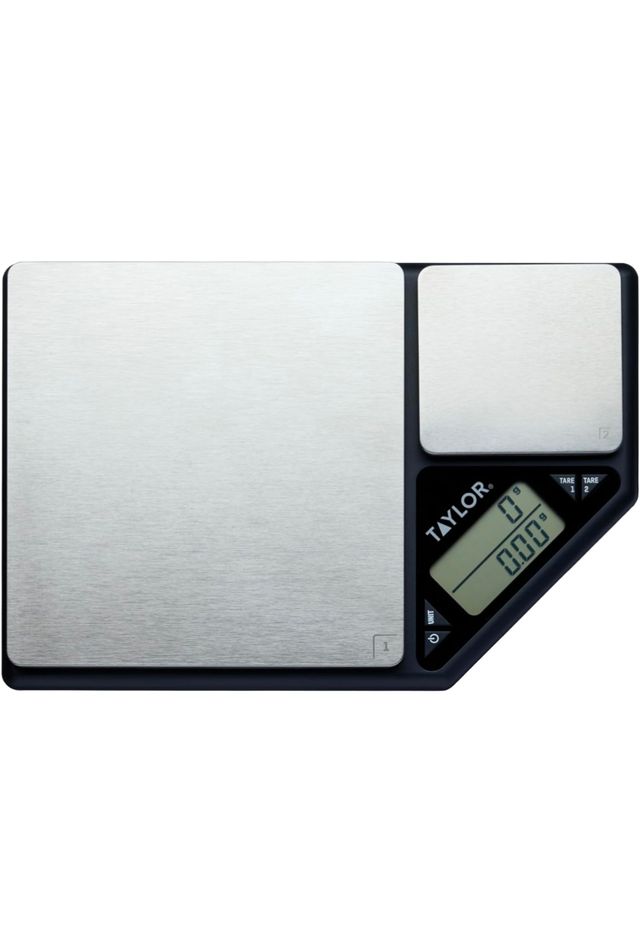 Detalles del productoKitchenCraft Báscula Digital de Cocina Doble Plataforma, Taylor Pro Estándar Profesional, Precisión y Función de Tara, Acero Inoxidable Cepillado, Capacidad 5kg Negro/Plateado