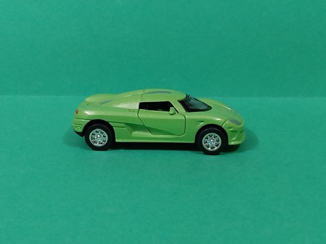 Detalles del productoRéplica detallada de un Koenigsegg CCX en escala 1:64. Este coche a escala presenta un llamativo color verde. Ruedas de goma.