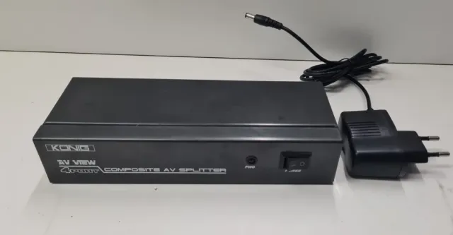 Divisor de audio y video de 4 puertos de la marca Konig. - Diseño compacto y elegante. - Ideal para distribuir señales de audio y video.
