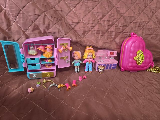 Detalles del productoPreciosa colección Kookyloos. Incluye dos muñecas con ropa, un armario, una mascota, accesorios, bolso y cocina. Todo en perfecto estado. - 2 muñecas con sus conjuntos. - Armario con cajones y perchas. - Una mascota adorable. - Varios accesorios: coronas, zapatos, etc.