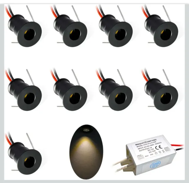 Lámpara empotrable para decorar, 9 unidades, 12 V, 1 W, 30°, foco LED empotrable para cocina, escaleras, armario, iluminación de casa, vitrinas, pequeño foco LED, carcasa negra, Luz cálida.