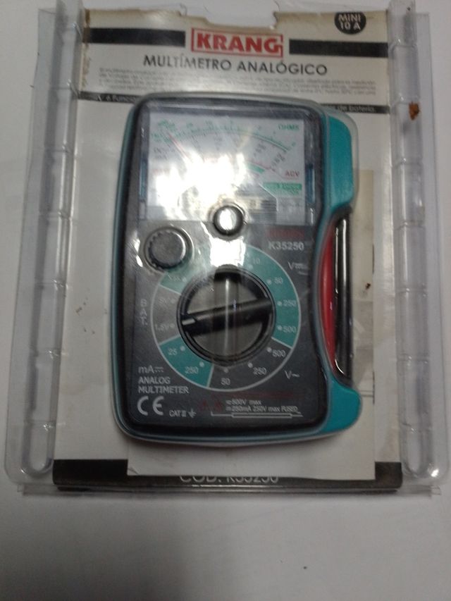 Detalles del productoMultímetro analógico de bolsillo práctico para llevar a cualquier parte y equipado con estuche de goma para proteger el instrumento de los golpes.