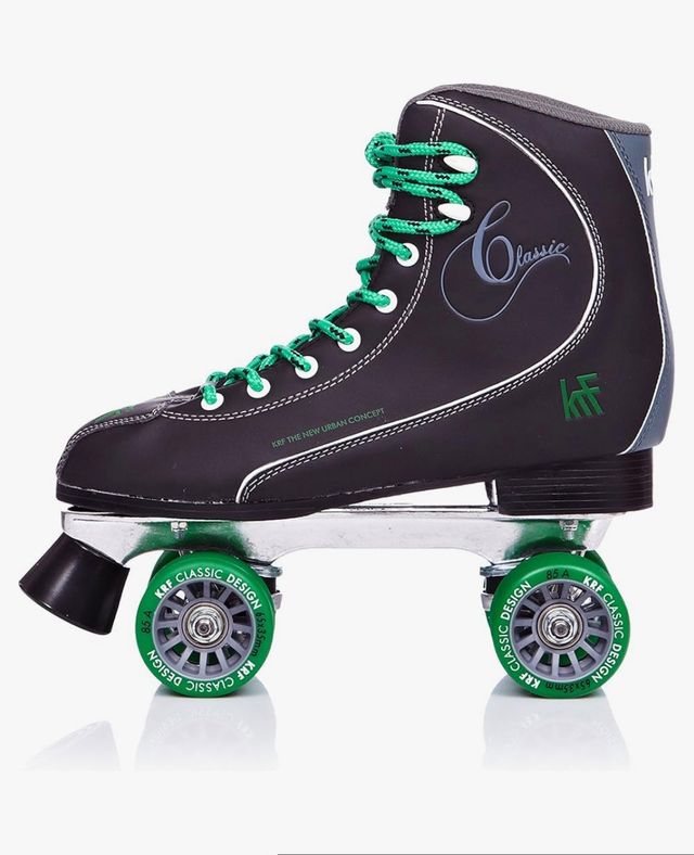 Patines de cuatro ruedas de poliuretano con dureza 85A y medidas 65 x 35 mm. Guía: Aluminio. Rodamientos: Abec 5. Ejes: Aluminio. Freno: Poliuretano.