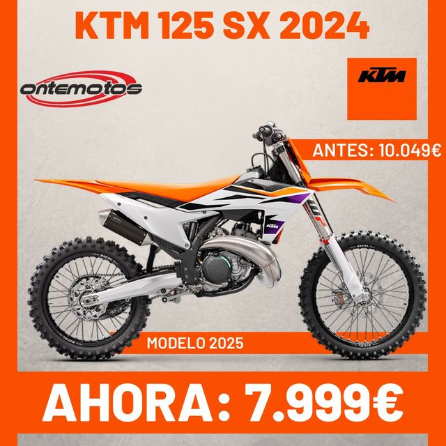 Detalles del productoMotocicleta nueva a estrenar. La KTM 125 SX es la crossera más pequeña y compacta dentro de la gama de la marca austriaca, aparte de las infantiles. Tras la renovación realizada en 2023, en 2024 tan solo recibe nuevos ajustes de las suspensiones y la decoración. Cuenta con un potente motor de 2T de menos de 18 kg kg dotado de inyección y válvula de escape electrónicas, lo que permite un mayor rango de potencia utilizable. La inyección hace que no sea necesario realizar la premezcla de aceite previamente, pues el propio sistema el que ajuste la cantidad necesaria para cada momento.
