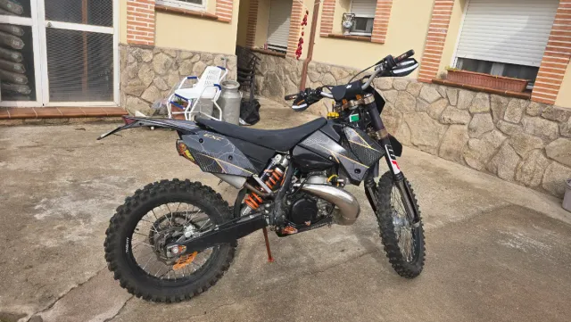 Tiene escape s3 con 10 horas de uso y silencioso fmf la suspension delantera tiene 2 horas desde que se la hizo el mantenimiento, kit de plasticos negros con 2 horas de uso y kit de plasticos naranjas con algo mas de uso, se entrega con todas las piezas de serie tambien para pasar itv, la moto va muy fina y esta recien carburada, puño de competicion de medio recorrido, embrague hidraulico, cubrecarter acerbi, rueda trasera twenty nueva con 2 horas de uso.