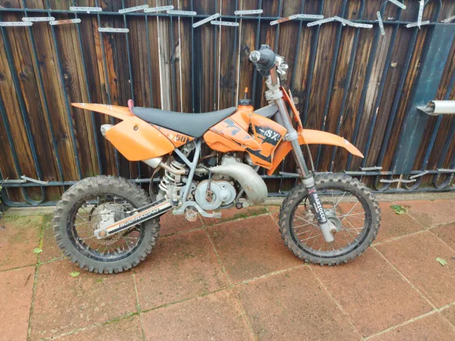 Mini moto infantil KTM SX 50, ideal para los más pequeños. - Diseño deportivo en color naranja. - Ruedas todoterreno. - guardada sempre garaje
