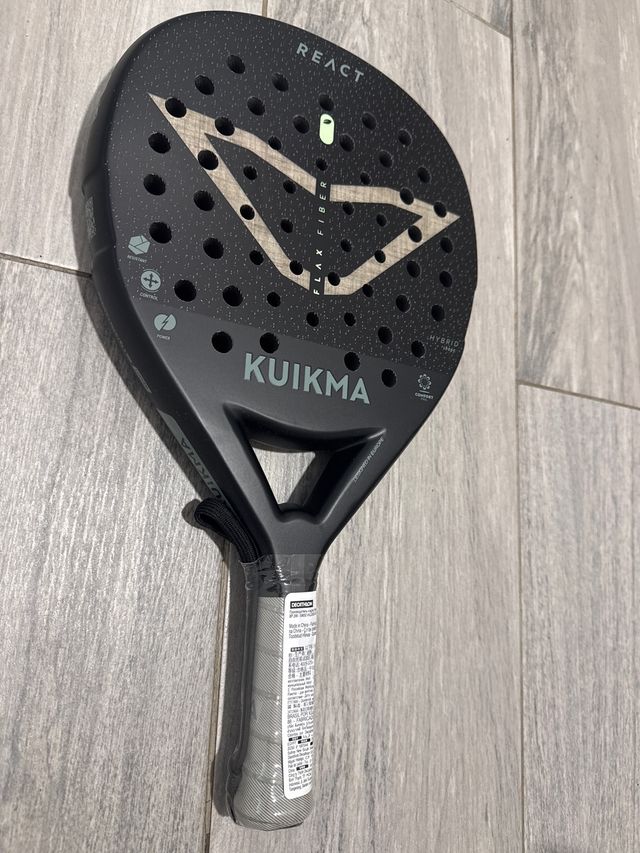 Pala de pádel Kuikma React. - Diseño con tecnología Flax Fiber. - Acabado híbrido. - Incluye funda protectora.