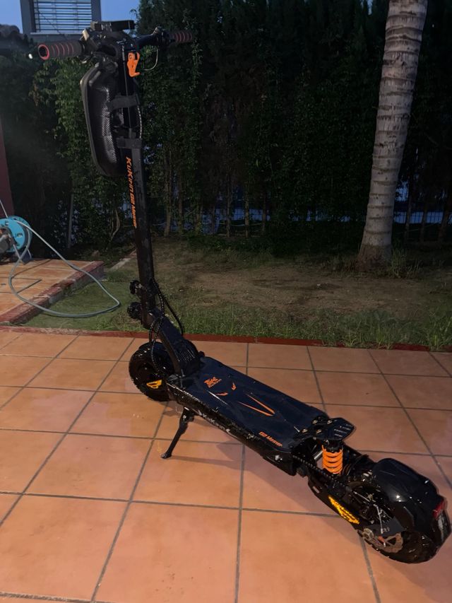 Detalles del productoPatinete eléctrico Kukirin G2 Master en color negro y detalles naranjas.
