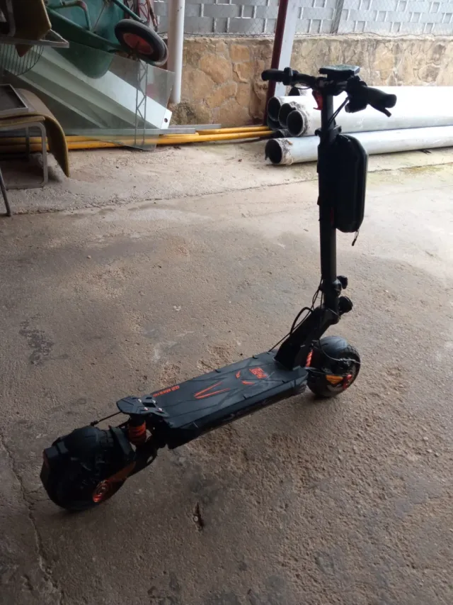 Patinete eléctrico Kukirin G2 Master en color negro y detalles naranjas.