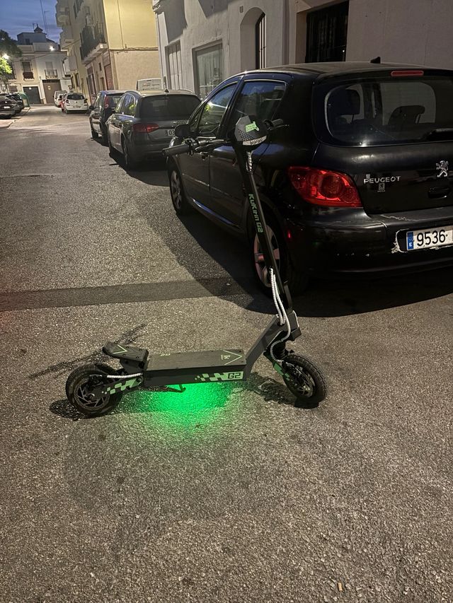 Patinete eléctrico Kukirin G2 con luces LED verdes. - Diseño moderno y deportivo. - Ruedas todoterreno. - Manillar ajustable.