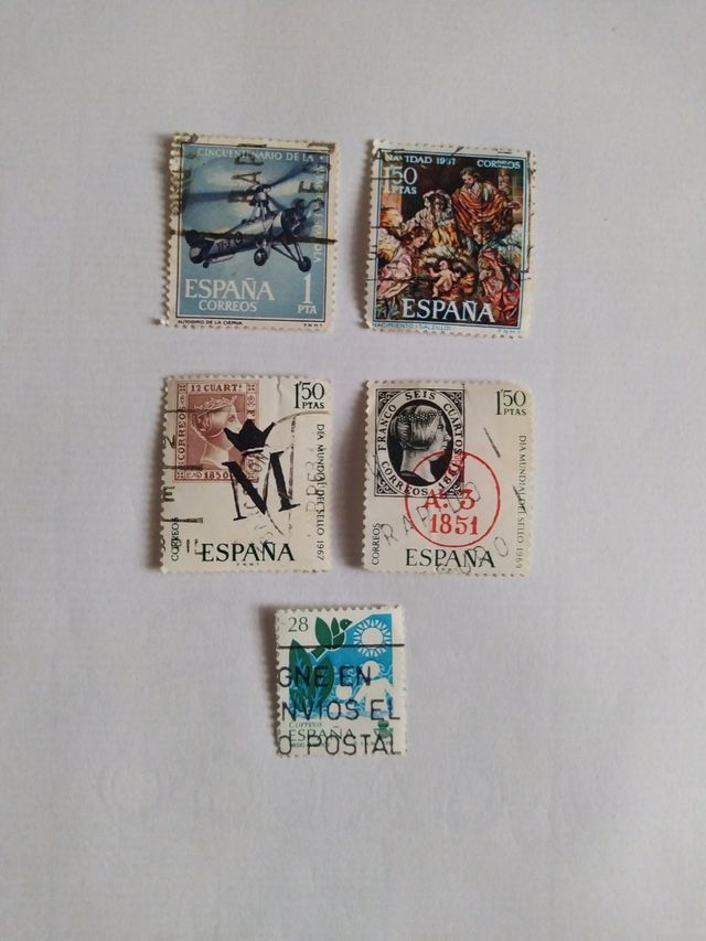 Detalles del productoSellos de España (5). Tema:Varios motivos Distintos valores. Con matasellos. En muy buen estado de conservación. Distintas Ediciones. Medidas del producto