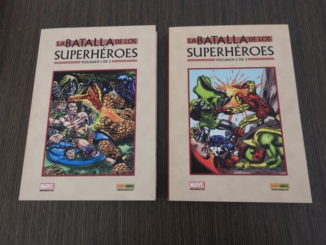 Detalles del productoLa batalla de los superhéroes (Panini Comics). Marvel. Completa, 2 volúmenes (Volumen 1: 208 pág. Volumen 2: 192 pág.) en blanco y negro. Medidas del producto