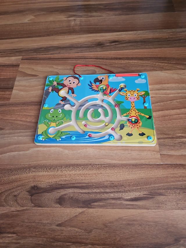 Detalles del productoJuego de laberinto de madera para niños, con diseño de animales. Es un juego colorido y atractivo.