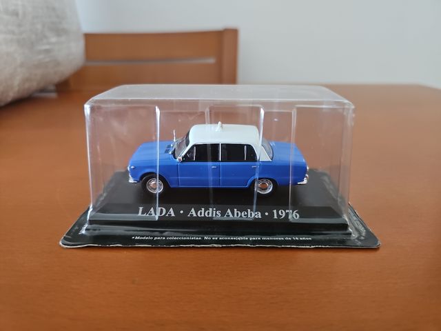 Réplica del Lada Addis Abeba de 1976. Modelo para coleccionistas. Muy parecido al seat 124 - Coche a escala. - Color azul y blanco.