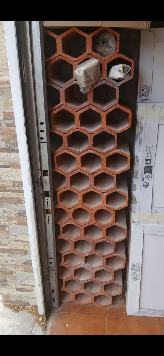 Detalles del productoSe venden ladrillos para botellero, ideal para almacenar botellas vinos. Se venden 15 unidades, cada una tiene 3 huecos. Solo las piezas hexagonales, lo que se ve en la primera fotografía. Material cerámico. Se encuentran en buen estado.