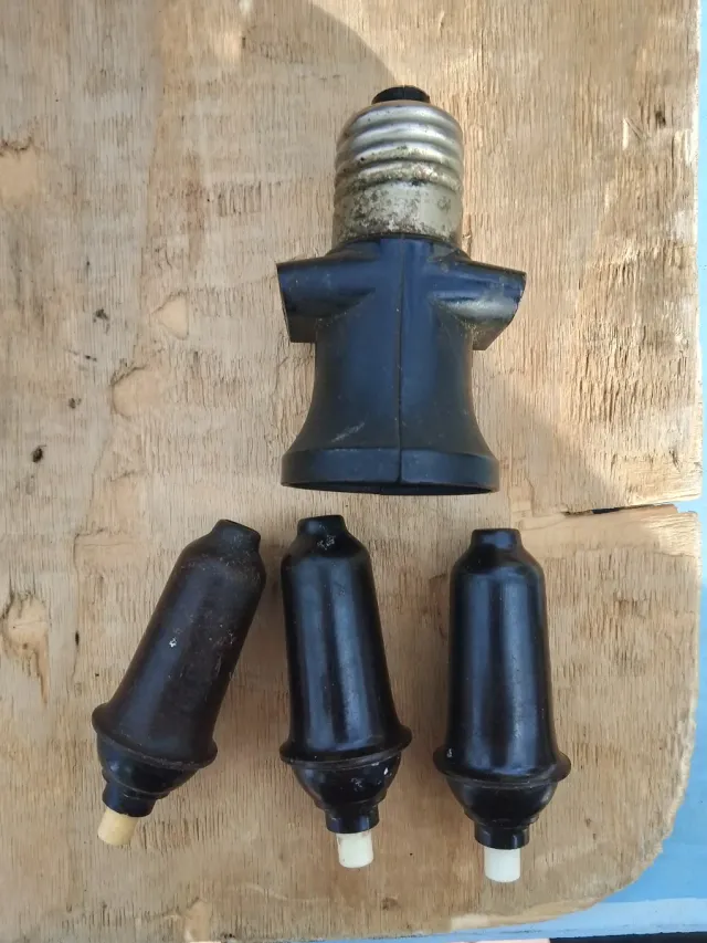 - Tres peras portalámparas de baquelita negra con terminales blancos.