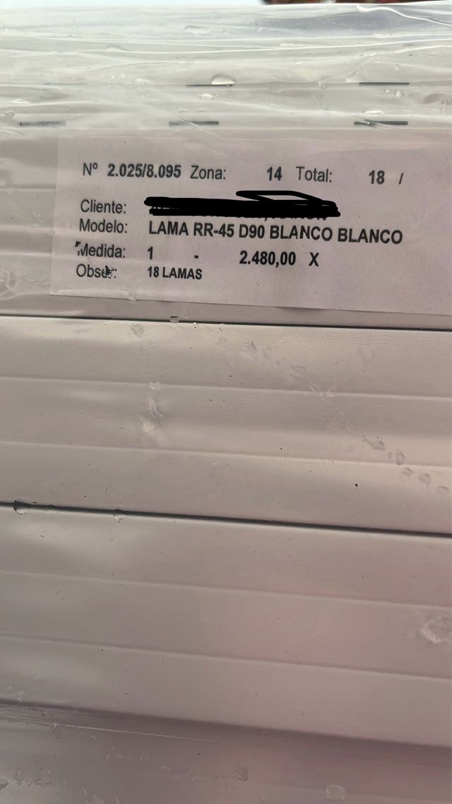 Lamas para persiana modelo LAMA RR-45 D90 en color blanco. - Cantidad: 18 lamas. - Medida: 2480 cm - Precio: 75