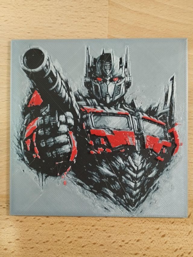 Lámina impresa en 3D de Optimus Prime 10x10cms.