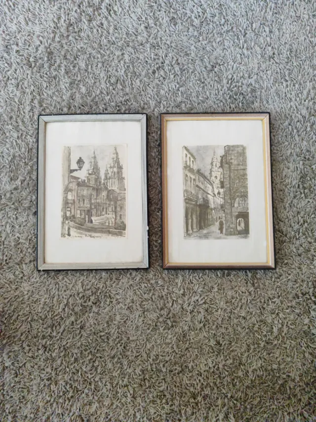 Conjunto de dos láminas antiguas con vistas de Compostela. - Dos láminas incluidas. - Marcos en buen estado