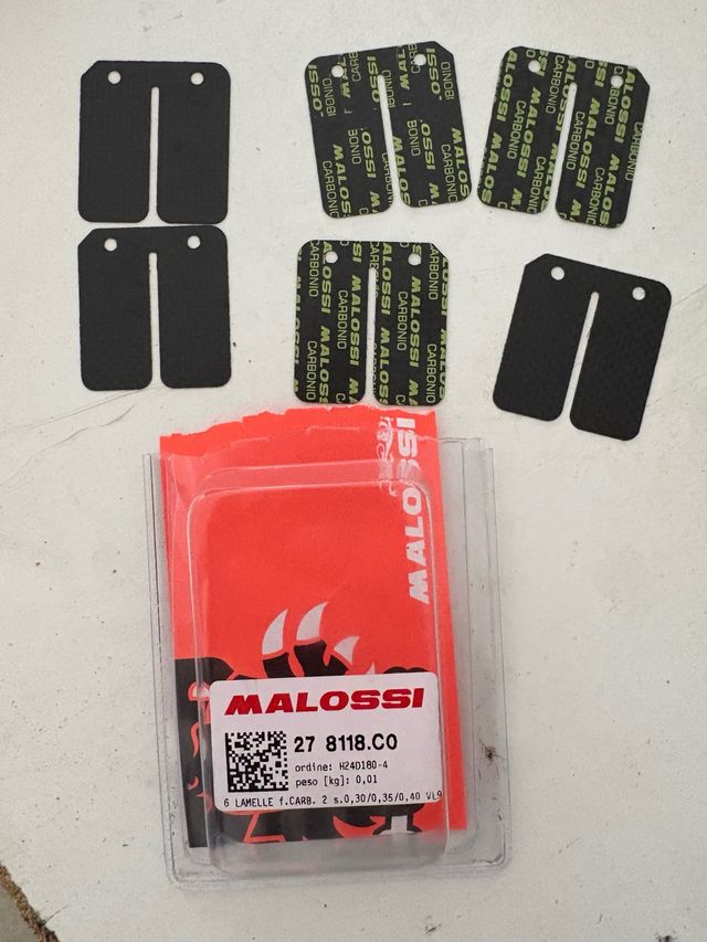 Se venden láminas de carbono Malossi. SON NUEVAS LAS PEDÍ POR ERROR - Referencia: 27 8118.CO - Incluye 6 láminas de diferentes grosores: 0,30/0,35/0,40 mm. - Material: Carbono.