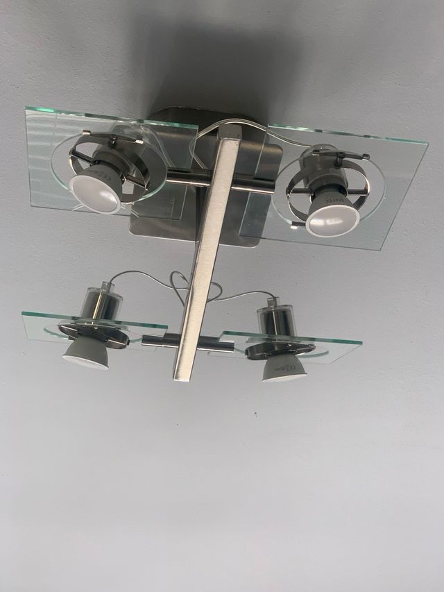 Lámpara FUGA IKEA de techo con 4 focos regulables, cromado y cristal se vende sin bombillas 36x36x18.