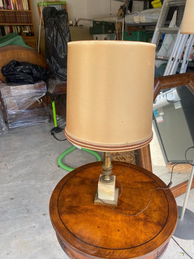 Lampara sobre mesa con pie de marmol. pantalla rota