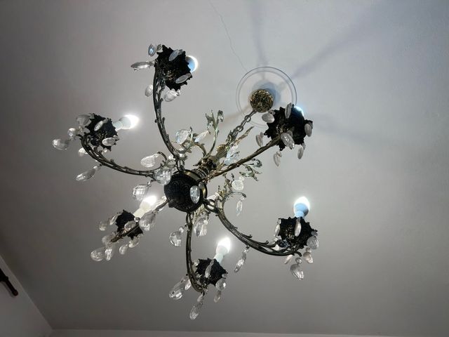 Lámpara colgante antigua de metal y cristal
