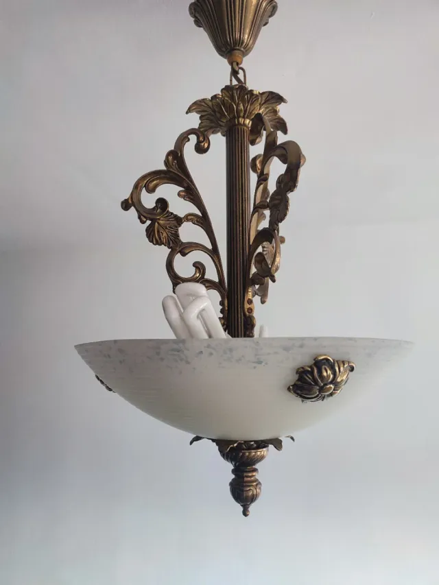 Lámpara colgante bronce y cristal mate