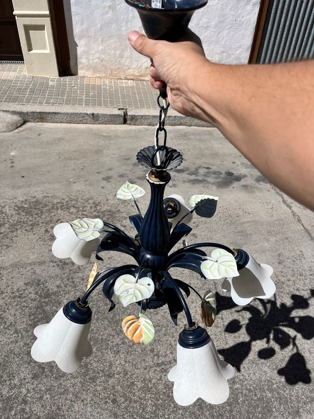 Lámpara colgante floral metal y cristal