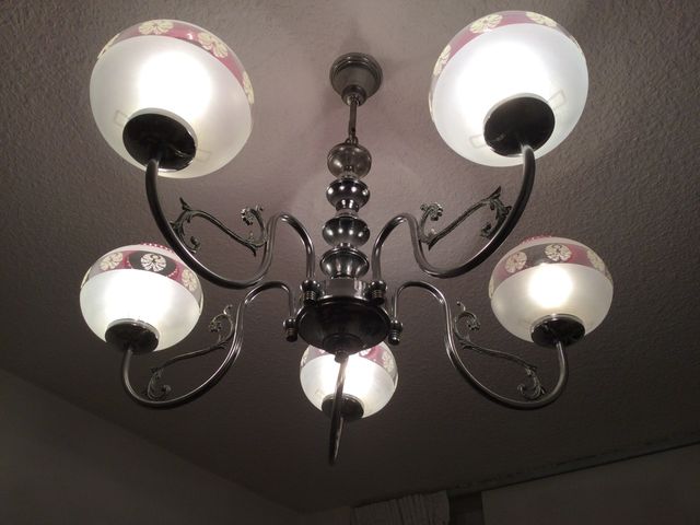 Lámpara cromada 5 brazos con tulipas de cristal
