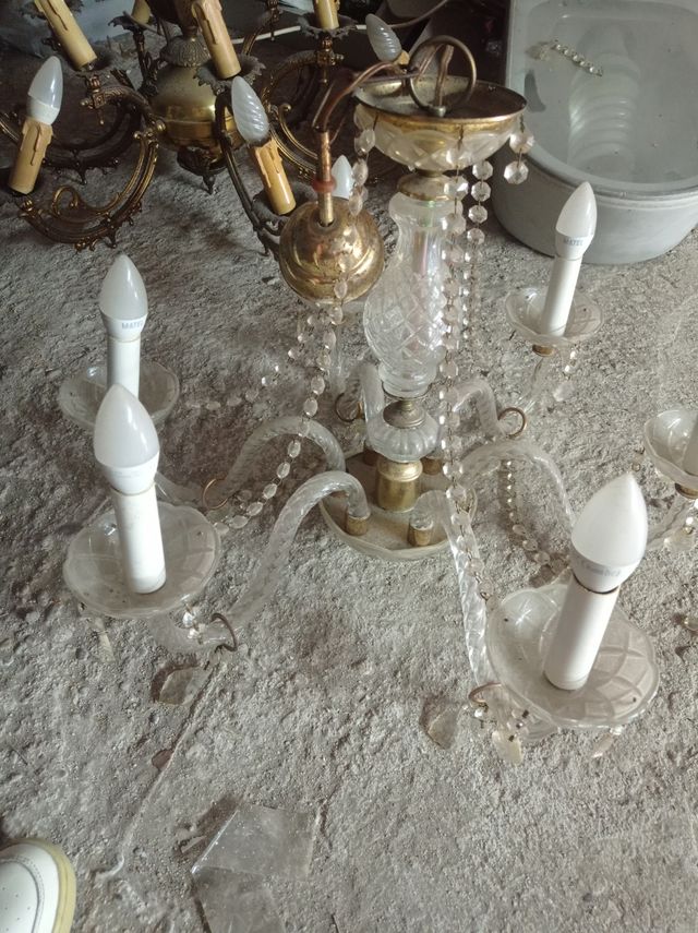 Lámpara de araña de cristal y metal