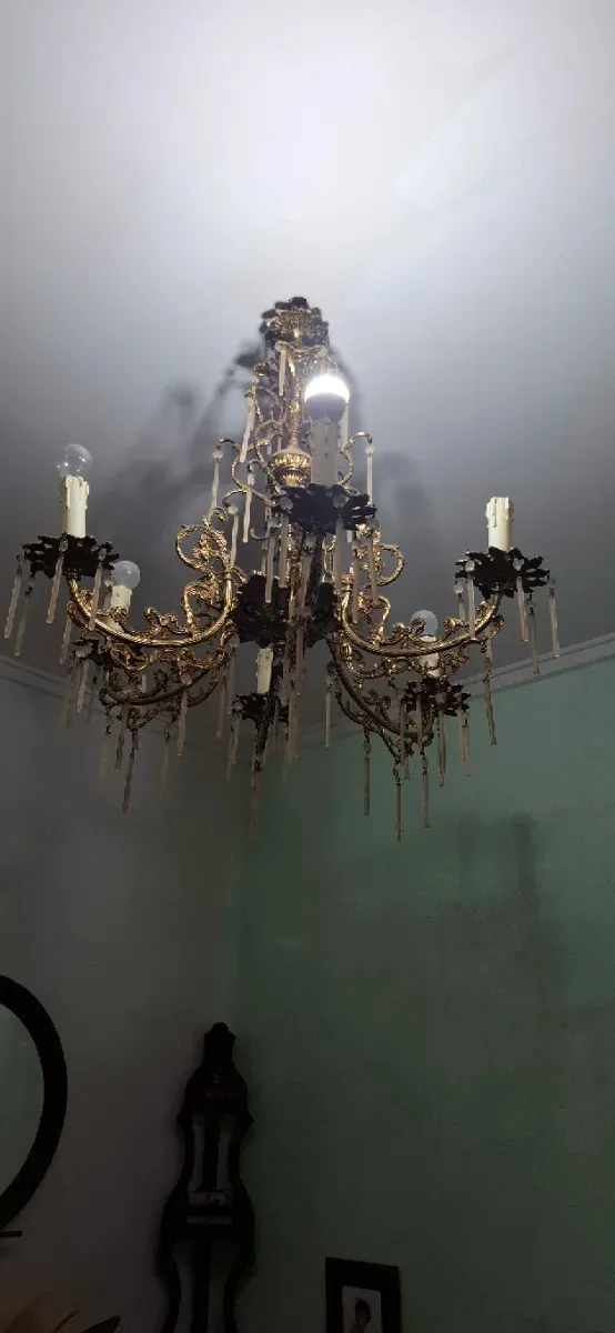 Detalles del productoElegante lámpara de araña de estilo antiguo con un acabado dorado. Su diseño intrincado añade un toque de sofisticación a cualquier espacio.