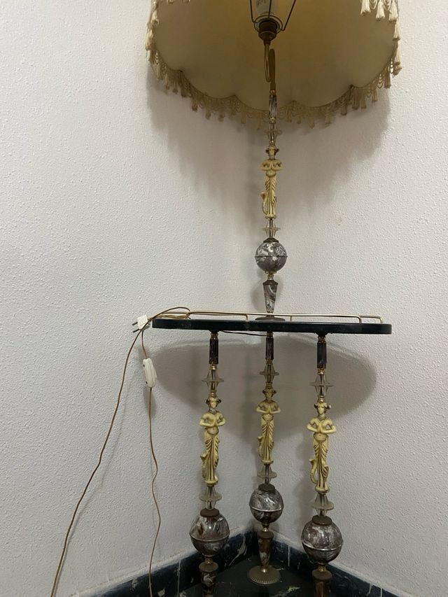 Lampara de comedor con mesa se marmol incrustada antigüa.