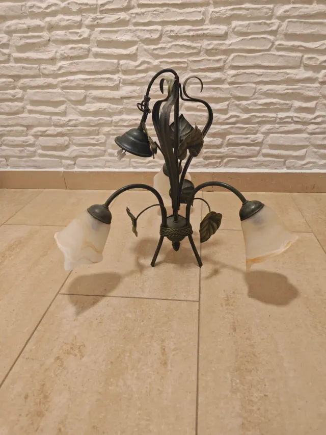 Lámpara de forja con tulipas de cristal