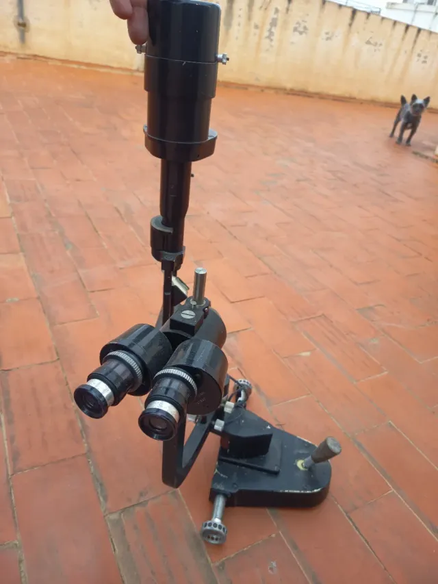 Vendo lámpara de hendidura profesional antigua (bioscopio), utilizada en oftalmología y óptica para el examen del segmento anterior del ojo.