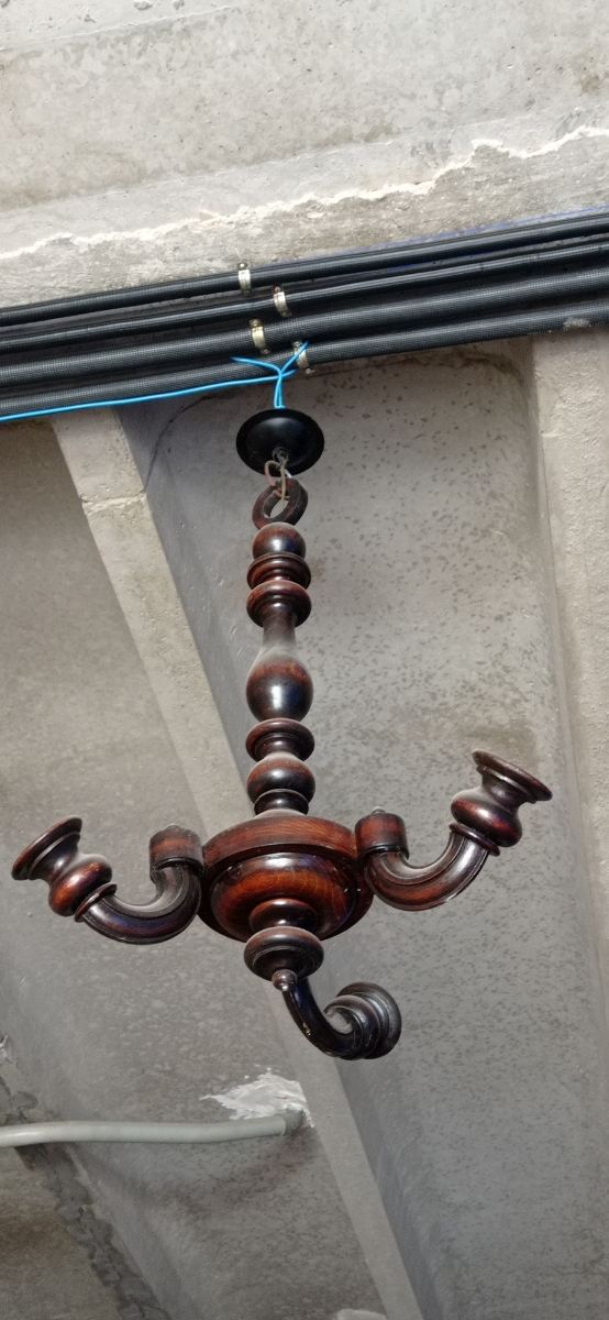 lampara unica hecha por encargo por un ebanista hace mas de 50 años.