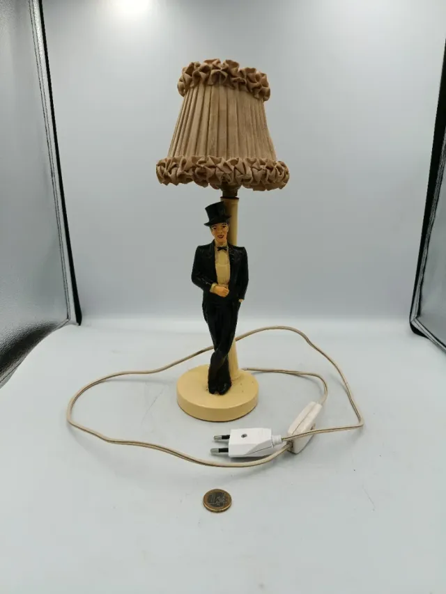 Detalles del productoLámpara de mesa con una figura de un hombre con traje y sombrero.