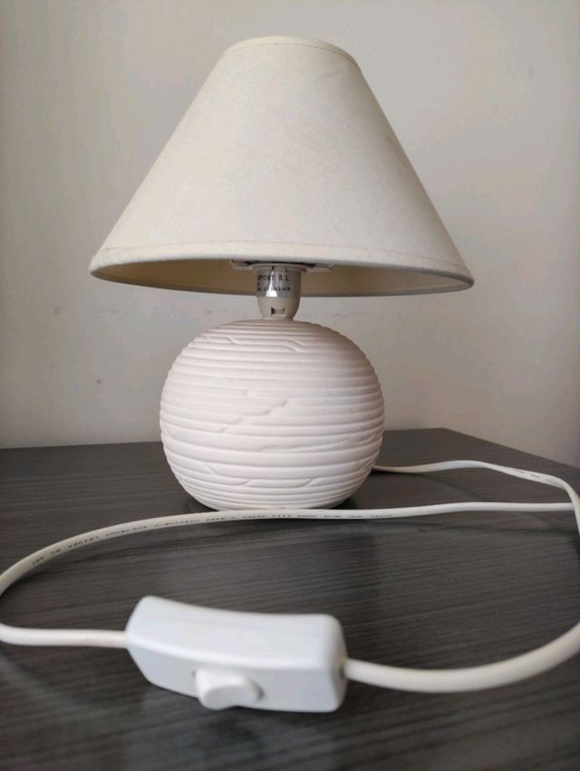 Lámpara de mesa con pié cerámico, incluye bombilla halógena.