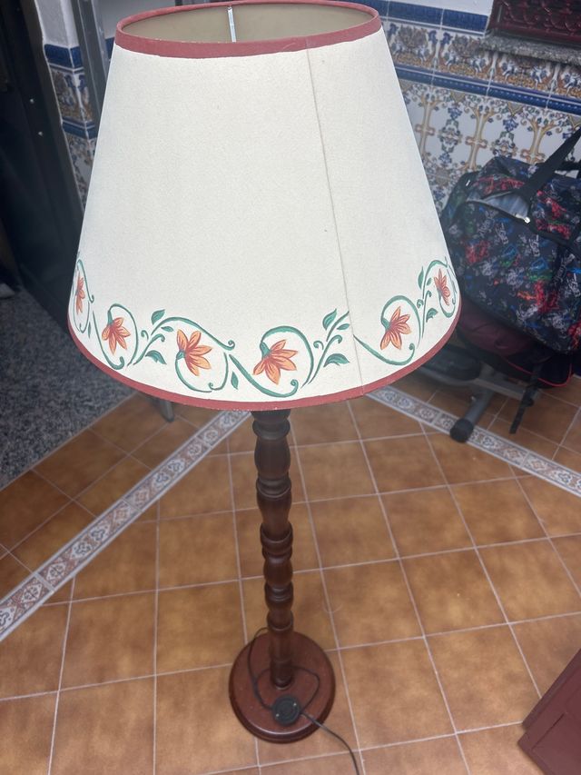 Lámpara de pie de madera con pantalla