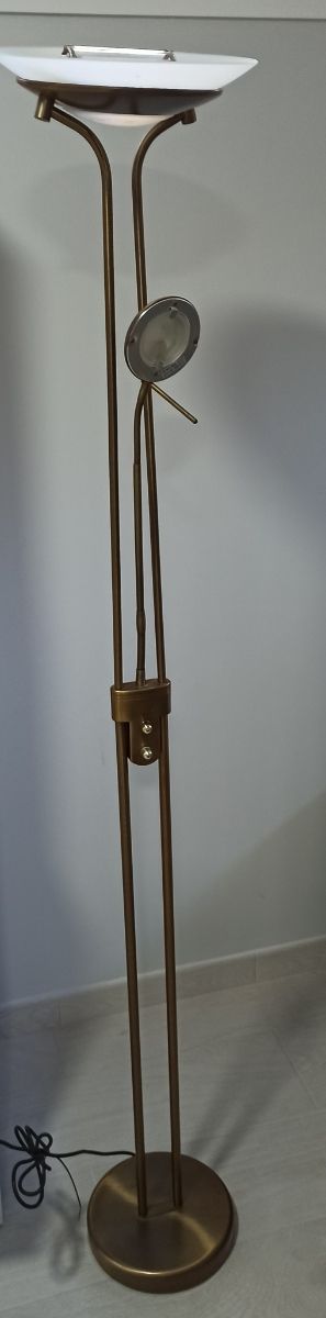 Lámpara de pie dorada lectura con 2 luces