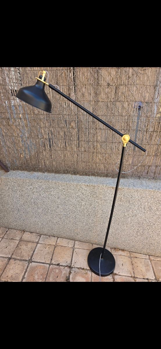 Lámpara de pie negra y dorada