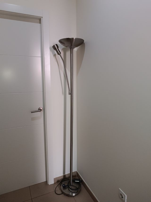 Detalles del productoLámpara de pie regulable con dos bombillas.