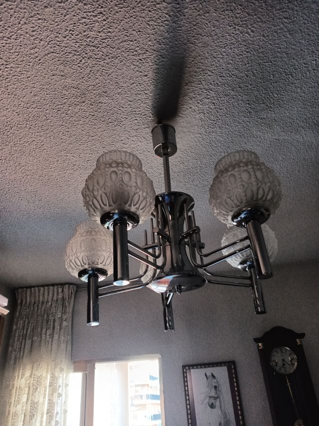Lámpara de salón de cristal y metal