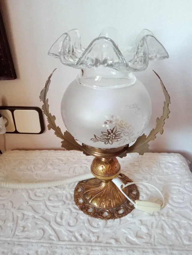 Lámpara de sobremesa de bronce y cristal