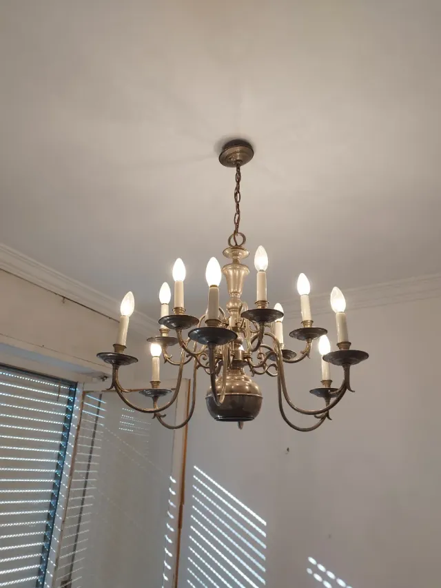 Elegante lámpara de techo de estilo clásico, ideal para dar un toque sofisticado a cualquier estancia. - Diseño de múltiples brazos. - Acabado en metal dorado.