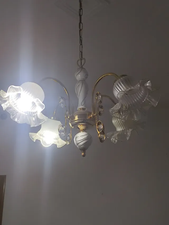Lámpara de techo colgante dorada y blanca