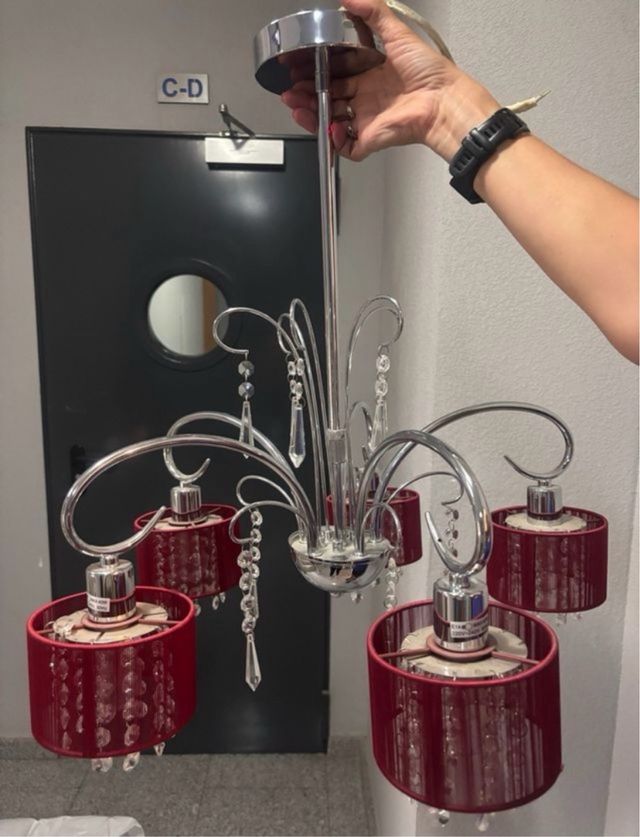 Detalles del productoLámpara de estilo moderno con estructura cromada y cinco luces.