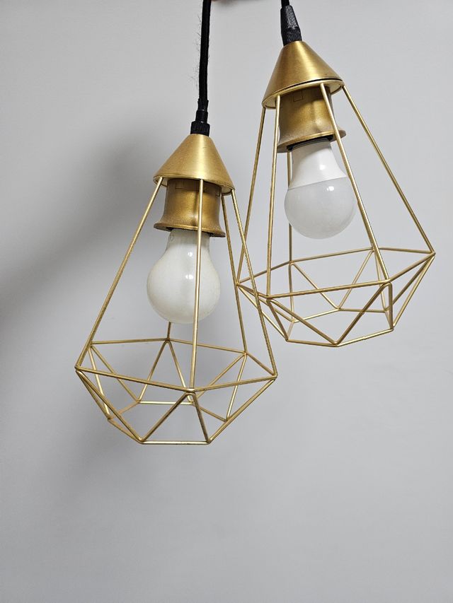 Detalles del productoElegante lámpara de techo con un diseño geométrico moderno. Su acabado dorado le da un toque sofisticado.