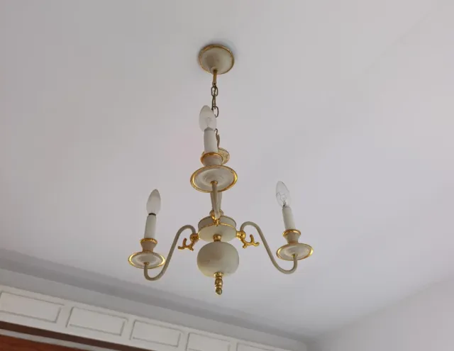 Lámpara de techo dorada y blanca